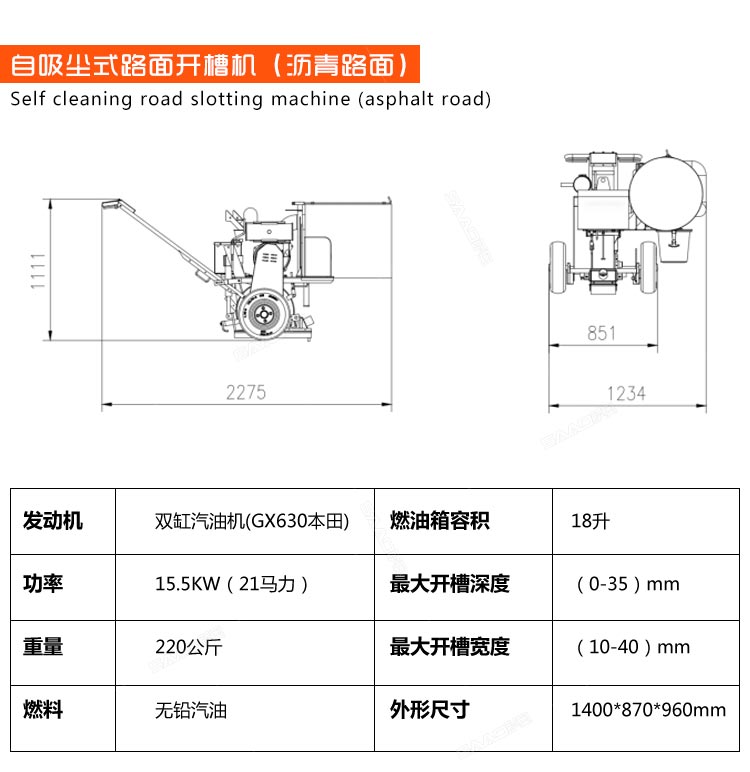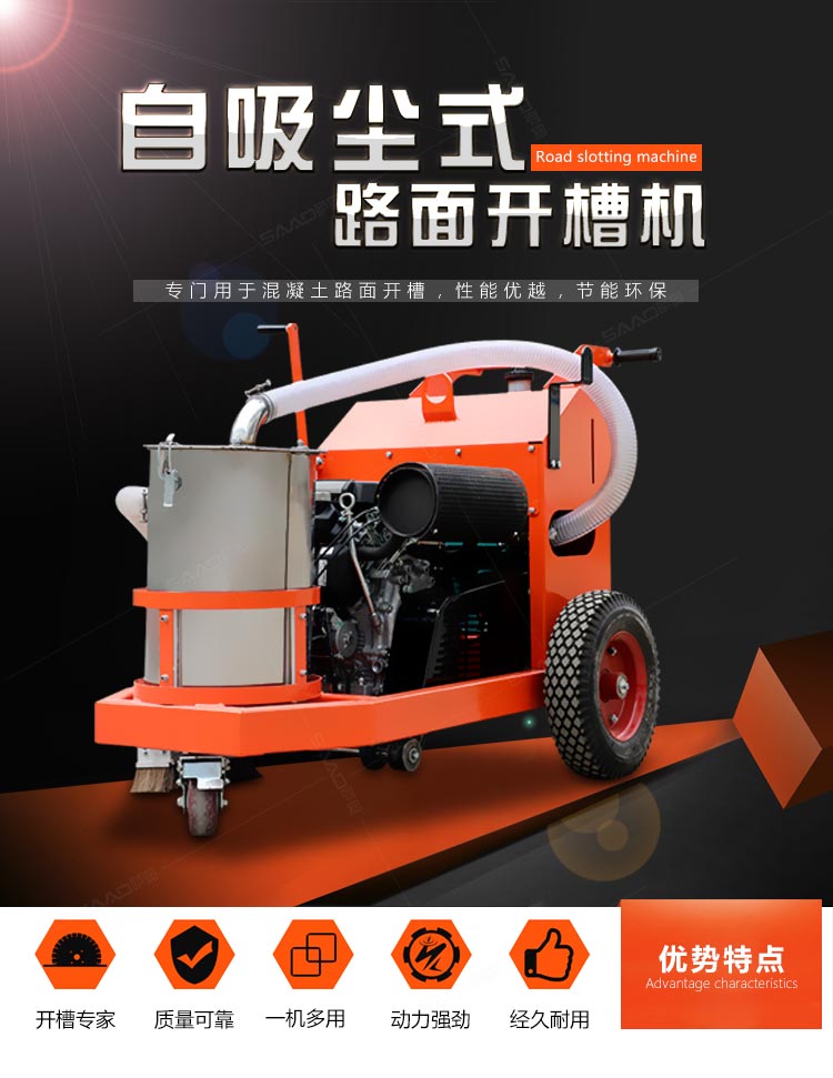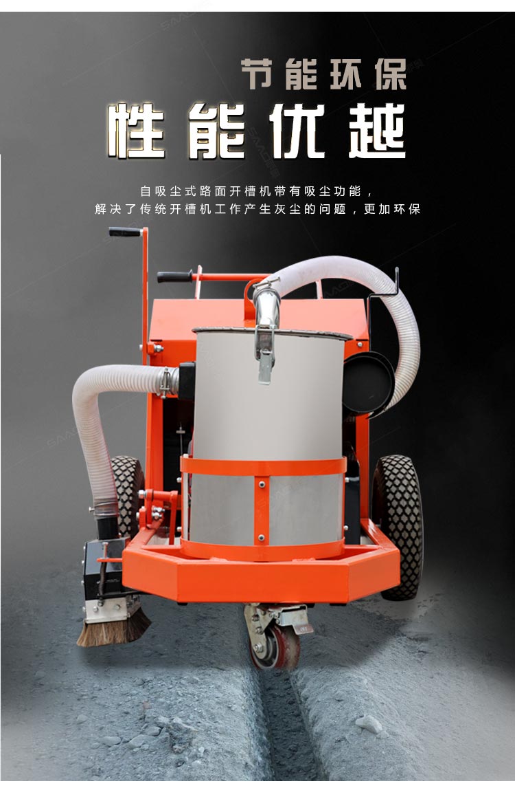 自吸塵式路面開槽機(jī)帶有吸塵功能,解決了傳統(tǒng)開槽機(jī)工作產(chǎn)生灰塵的問題,更加環(huán)保。我們這款路面開槽機(jī)是專門用于混凝土路面開槽的,性能優(yōu)越,節(jié)能環(huán)保。