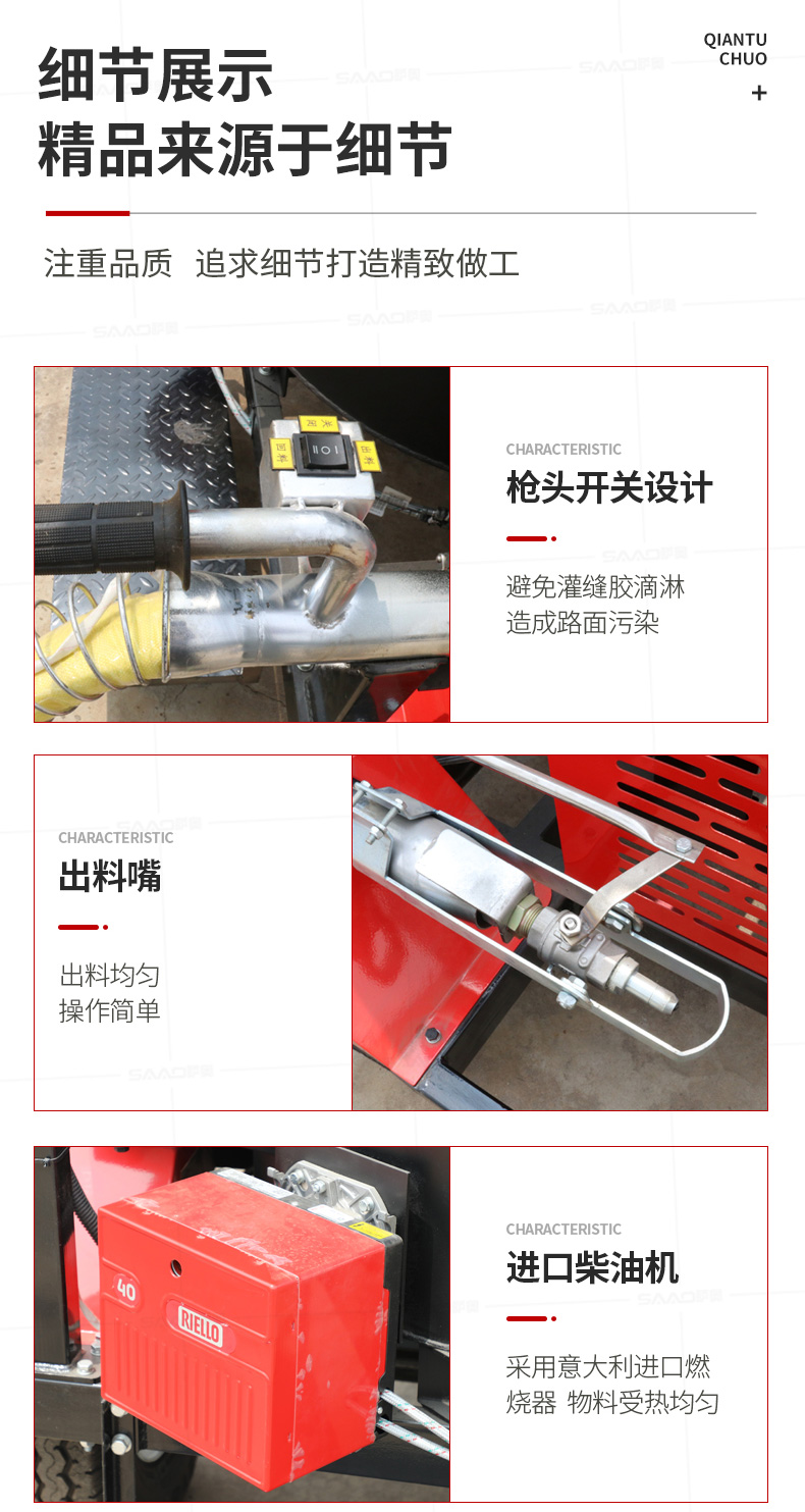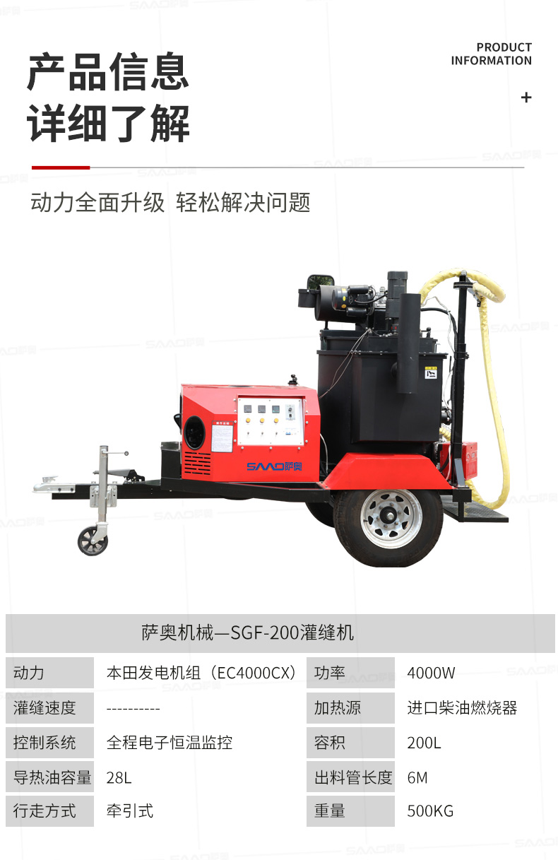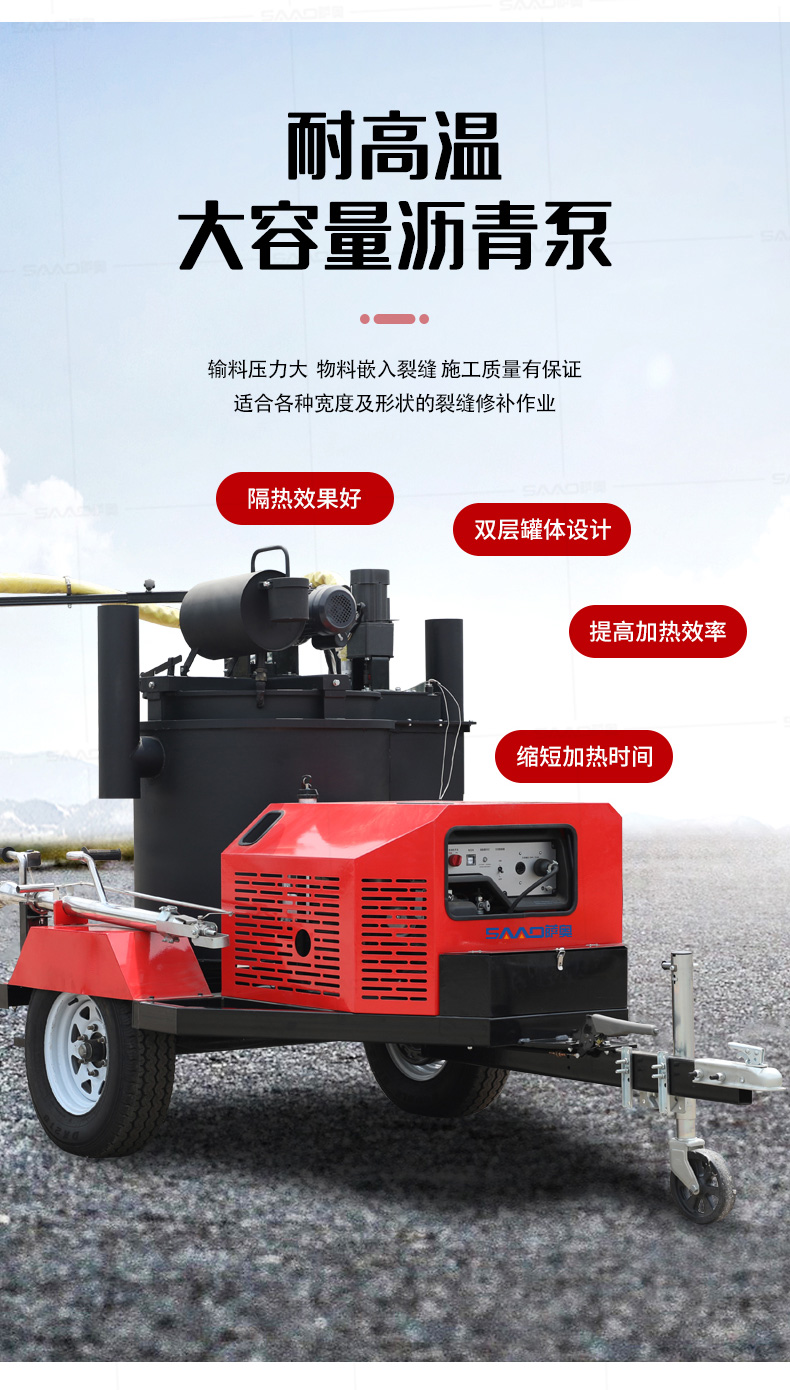 【產(chǎn)品介紹】 200升瀝青灌縫機適用于瀝青路面或水泥路面裂縫密封灌縫,是中型路面裂縫養(yǎng)護工程量施工理想設(shè)備。 自主研發(fā)生產(chǎn),擁有自主知識產(chǎn)權(quán)的薩奧品牌,瀝青灌縫機,使用