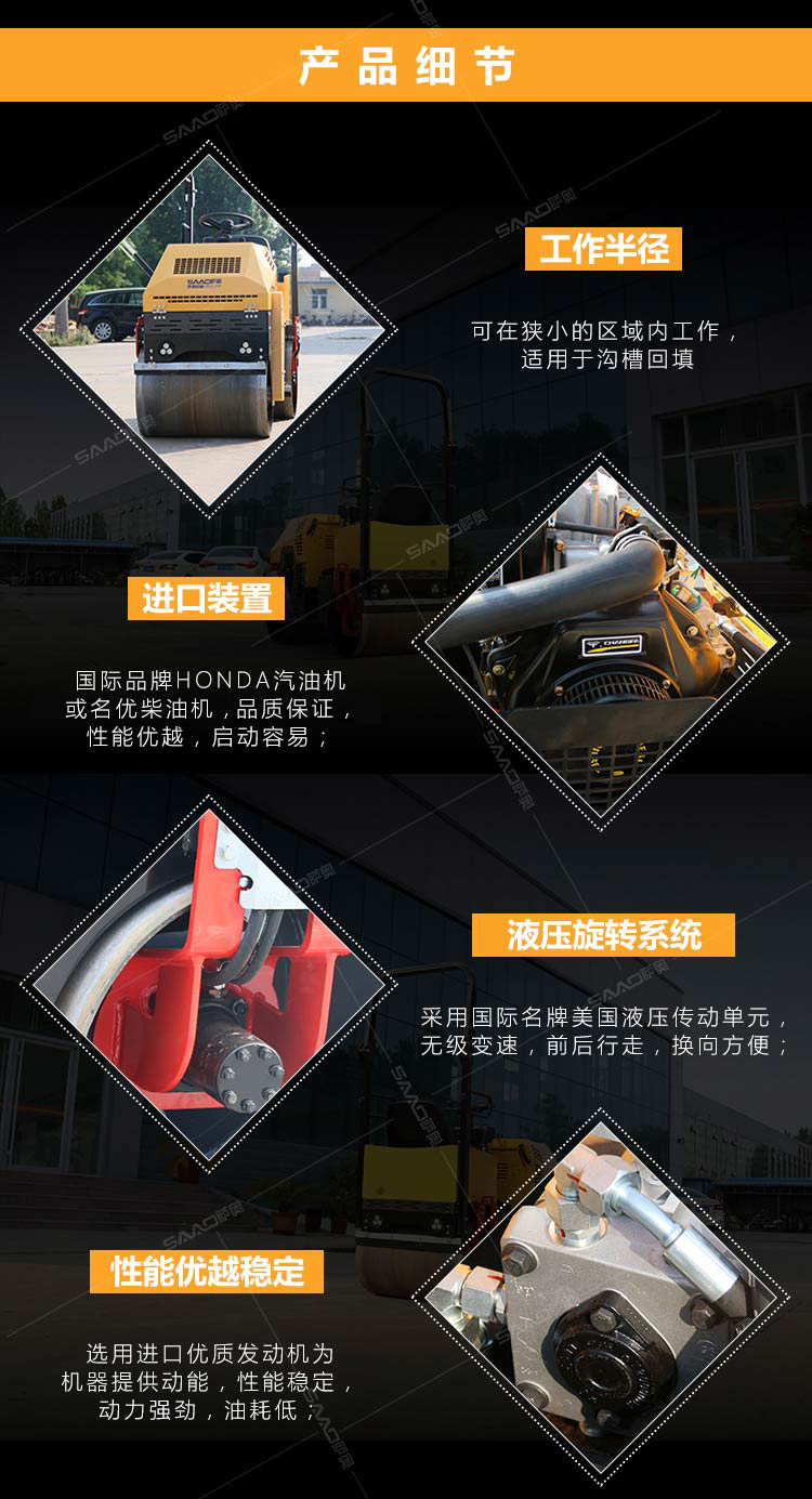 ·發(fā)動機電啟動,機器振動電磁離合控制,操作更加輕松方便;