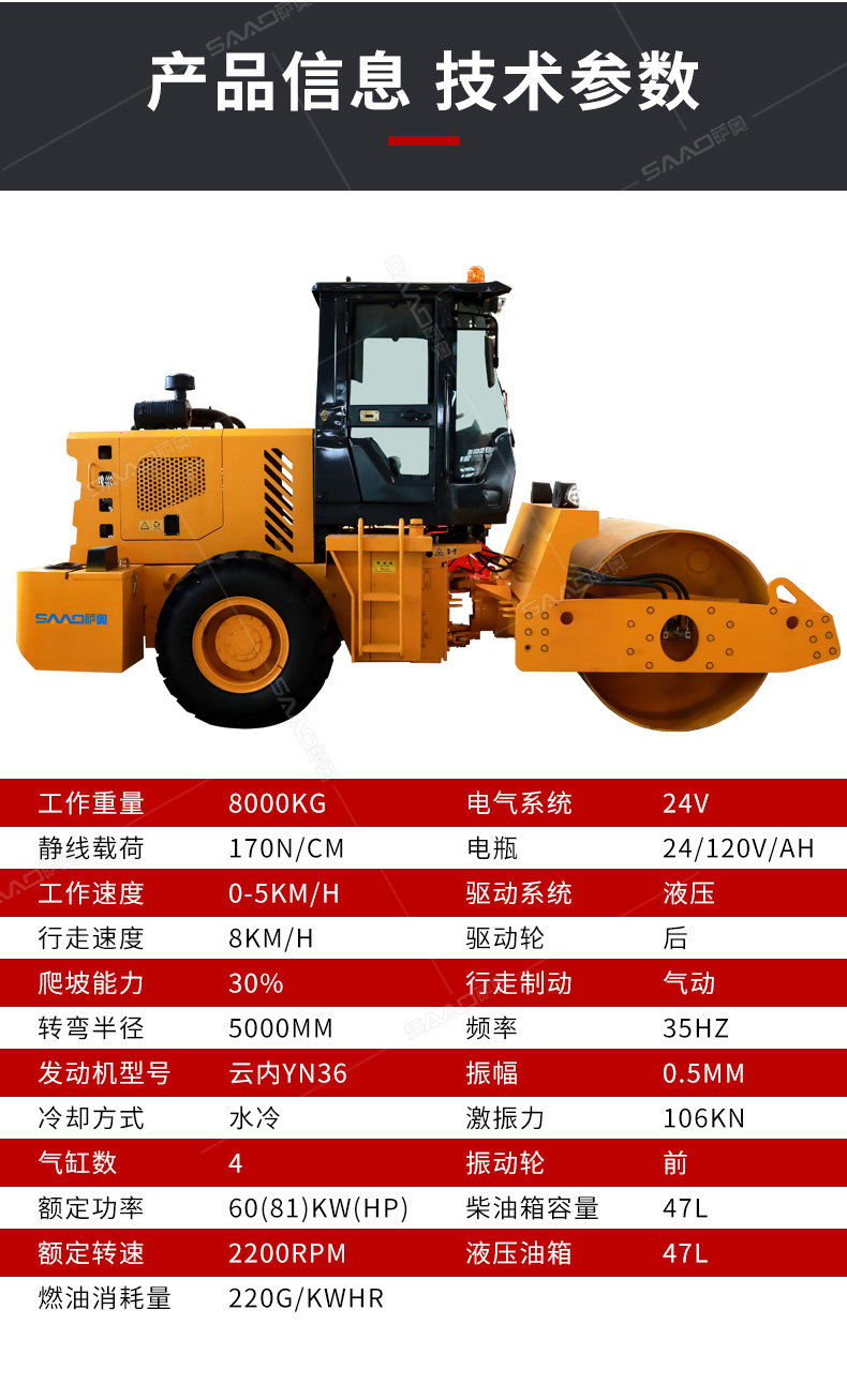 8噸壓路機(jī)主要應(yīng)用市政道路、公路維護(hù),具有強(qiáng)大的激震力及很高的靜線壓力,適宜于碾壓非粘性材料如礫石、礫土、碎石、砂石混合料和巖石填方以及粘土等。